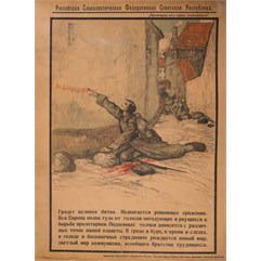 Плакат. Художник В. Спасский. «Грядет великая битва. Надвигается решающее сражение. Вся Европа полна гула от голосов негодующих и рвущихся к борьбе пролетариев…» [М.], издательство ВЦИК, [I –IV 1919].