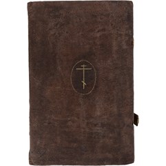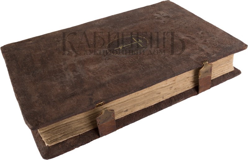 Экземпляр в старинном цельнокожаном переплете. Рабочие застежки. Потертости переплета, следы от перелистывания, пятна от воска, редкая подклейка маленьких фрагментов страниц, л. 257 вплетен между л. 258 и 259, утрата листов в конце блока.