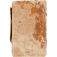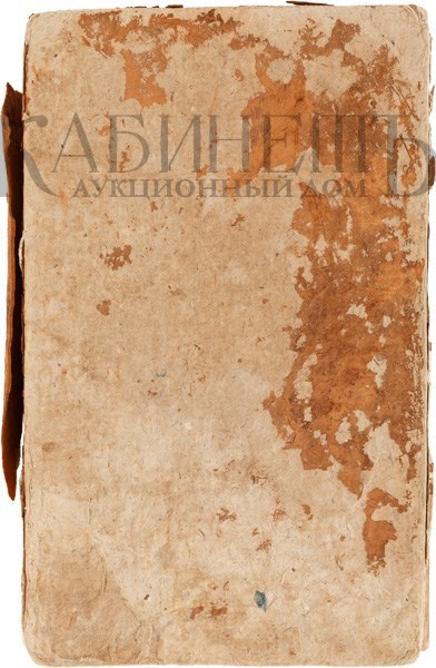 Экземпляр в старинном переплете, кожа на корешке фрагментарно утрачена, верхняя крышка отделена от блока, потертости, следы от залистывания.