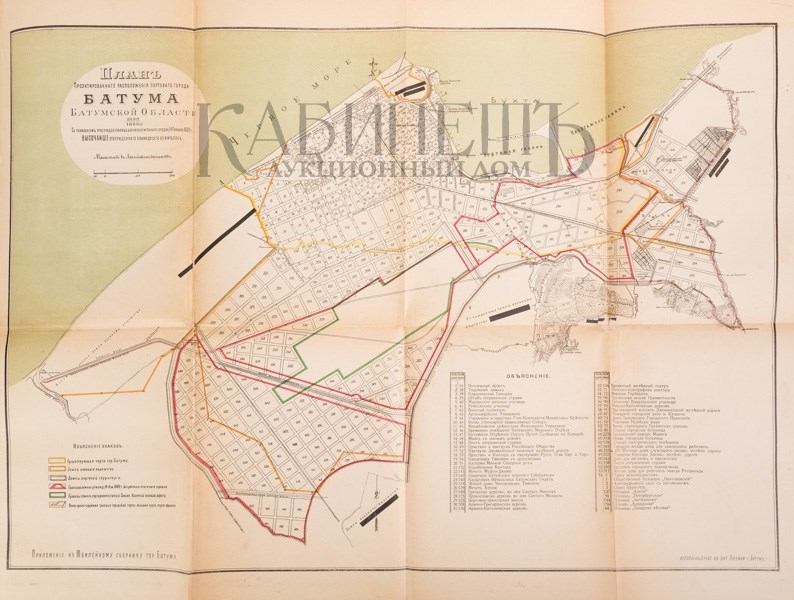 Карта Батумской области, план проектированного расположения портового города Батума и план Батумского порта на раскладных листах в конце блока.