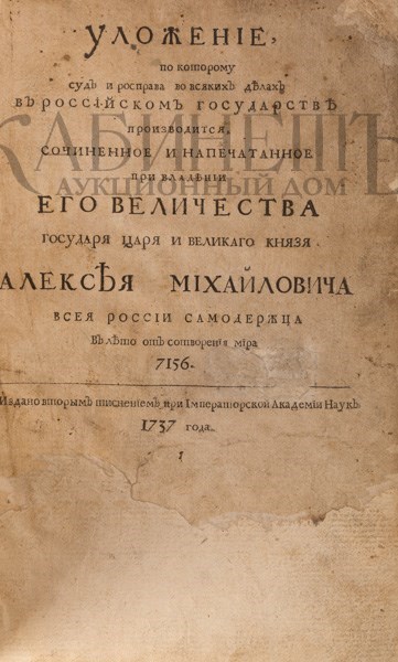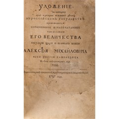 1) Уложение, по которому суд и расправа во всяких делах в Российском государстве производится сочиненное и напечатанное при владении Его Величества государя царя и великого князя Алексея Михайловича. СПб., издано вторым тиснением при Императорской Академии Наук, 1737 [1748].