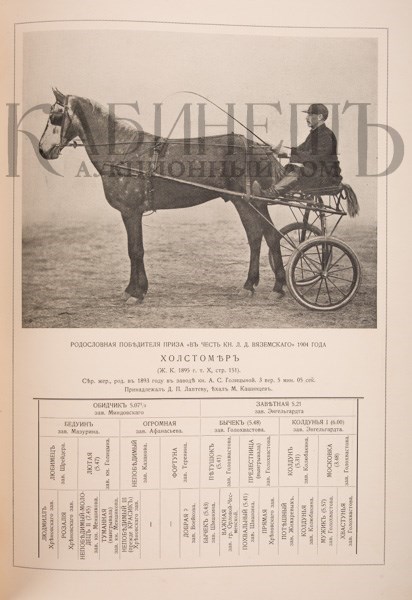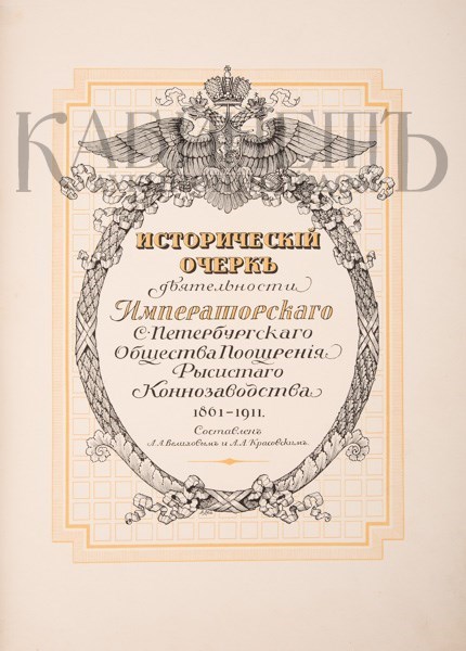 Исторический очерк деятельности С.-Петербургского общества поощрения рысистого коннозаводства. 1861-1911. Составлен Л.А. Велиховым и А.А. Красовским. СПб., т-во Р. Голике и А. Вильборг, [1914].