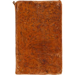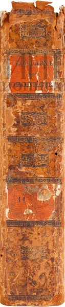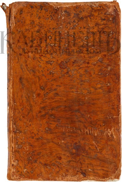 Экземпляр в старинном цельнокожаном переплете с остатками золотого тиснения по корешку, мелкие утраты и надрывы в верхней части корешка. Разлом по корешку, корешок отходит от блока, потертости, форзацы подклеены бумагой.