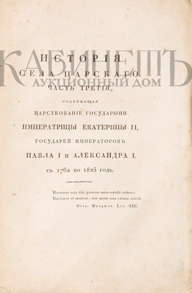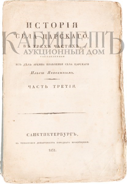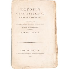 История Села Царского, составлена И. Яковкиным. Часть III. [Из 3-х]. СПб., в типографии департамента народного просвещения, 1831.