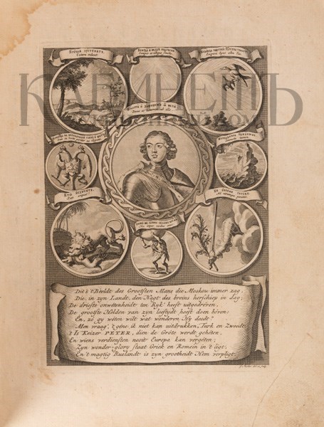 Портрет Петра I с оригинала англичанина Готфрида Кнеллера и иллюстрации выполнены в технике гравюры на меди.