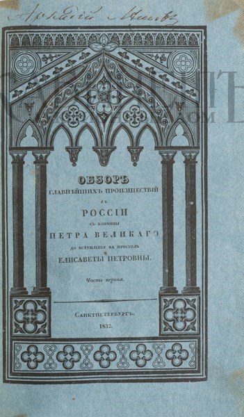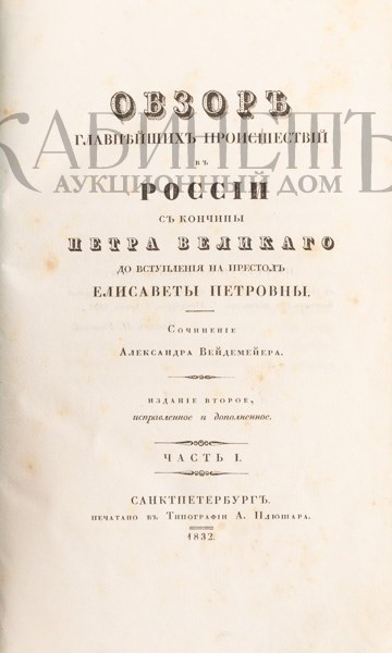 Прижизненное издание русского историка Александра Ивановича Вейдемейера (ум. 1852).