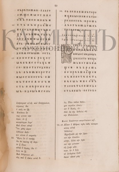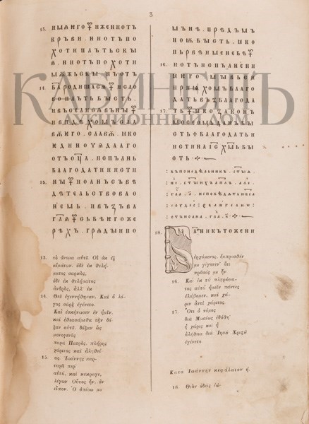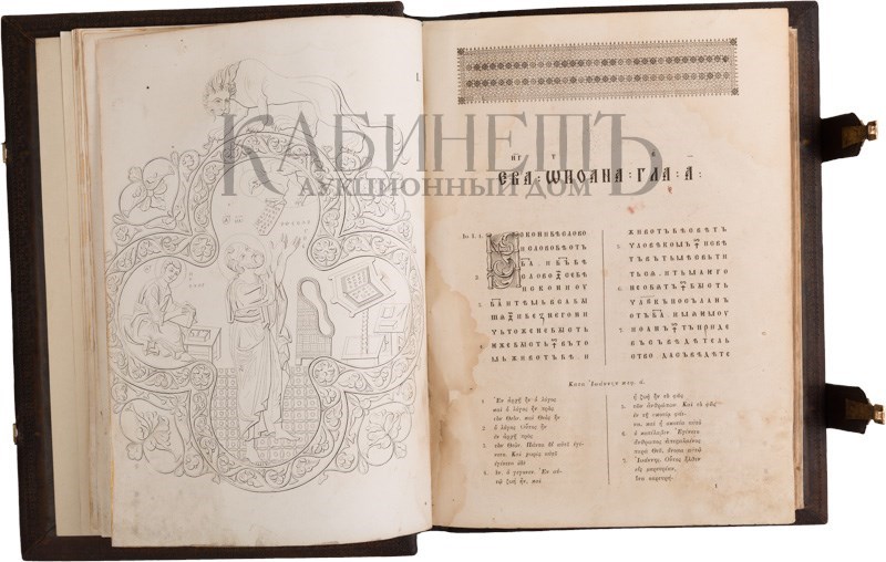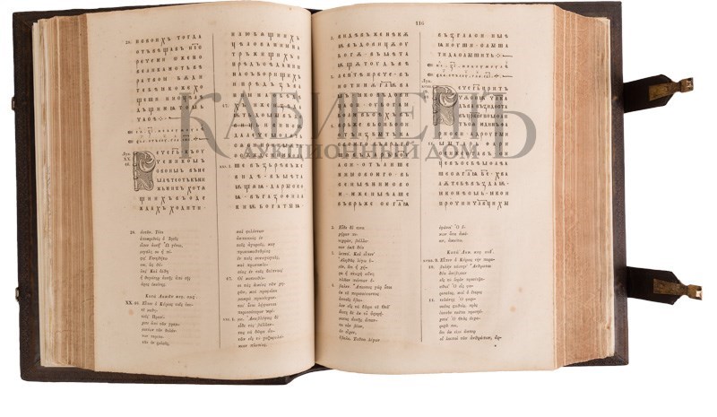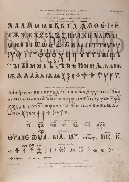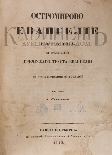 [Востоков А.] Остромирово евангелие 1056 –1057 года. С приложением греческого текста Евангелий и с грамматическими объяснениями, изданное А. Востоковым. СПб., Типография Императорской Академии Наук, 1843.