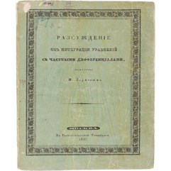 Зернов Н.Е. Рассуждение об интеграции уравнений с частными дифференциалами, сочиненное Н. Зерновым. М., в Университетской типографии, 1837.