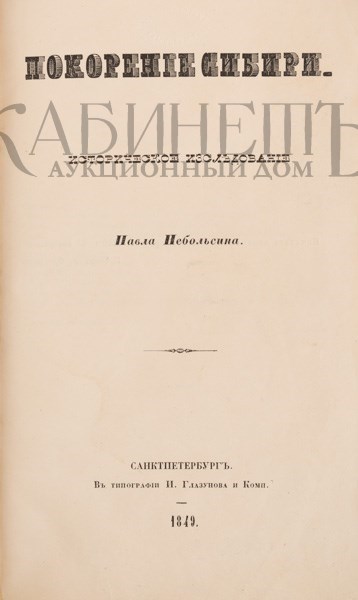 Небольсин П. Покорение Сибири. Историческое исследование. СПб., в типографии И. Глазунова и Комп., 1849.