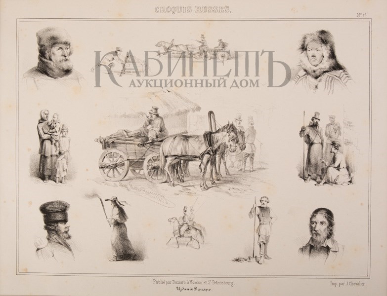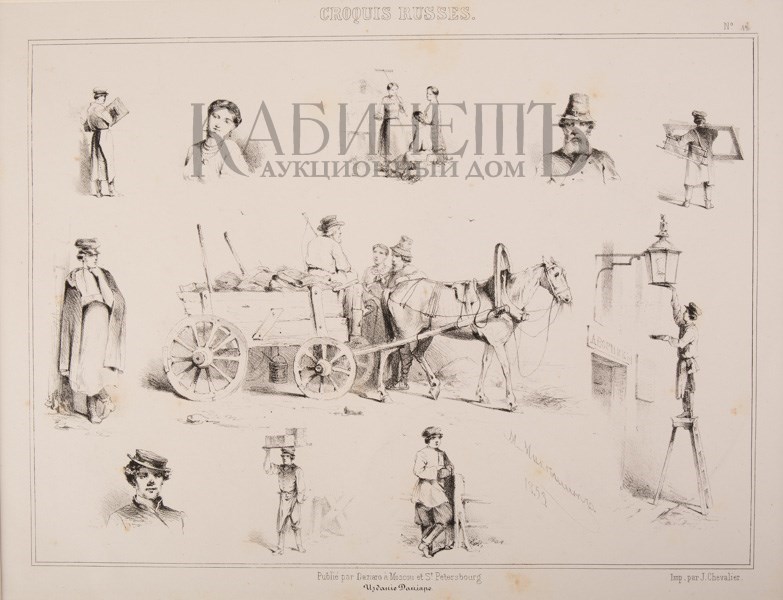 1) Городские типажи. Лист №17. Литография. Художник М. Микешин. М. – СПб., издание Дациаро. Печатник J. Chevalier, 1853.