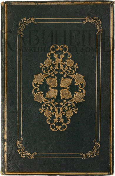 Экземпляр в старинном цельнокожаном переплете с золотым тиснением по крышкам и корешку. Золототисненный дворянский суперэкслибрис на корешке. Форзацы из бумаги, имитирующей муар. Тройной золоченный обрез. Ляссе. Незначительные потертости переплета (в основном нижняя и верхняя части корешка и уголки), утрата фрагментика верхней части корешка, редкие «лисьи» пятна, загрязнения форзацев и нахзацев.