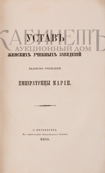 Устав женских учебных заведений Ведомства учреждений Императрицы Марии. СПб., в типографии Опекунского совета, 1855.