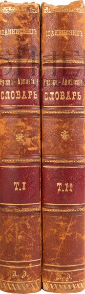 Экземпляр в двух старинных полукожаных переплетах с золотым тиснением и бинтами на корешках. Форзацы из бумаги, имитирующей муар. Потертости переплетов, мелкая утрата в верхней части корешка тома I, II и нижней части корешка тома II, отрезан фрагмент свободного листа форзаца тома I, редкие незначительные пятна.