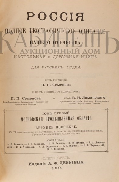Семенов-Тянь-Шанский В. П. Россия. Полное географическое описание нашего Отечества, настольная и дорожная книга для русских людей. Под редакцией В.П. Семенова. В 11 томах [Комплект]. СПб., Издание А.Ф. Девриена. 1899-1914.