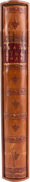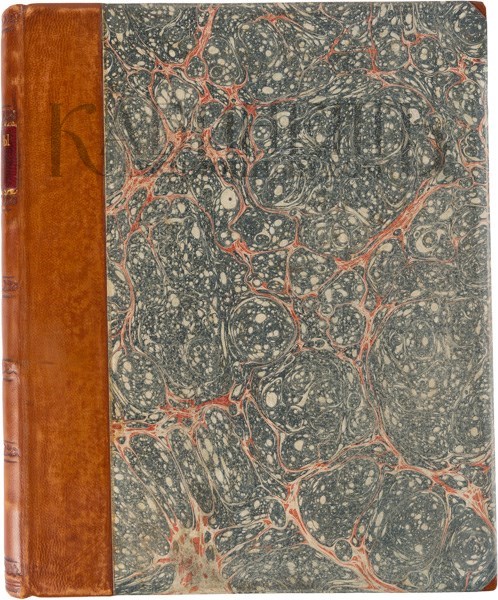 Экземпляр в полукожаном переплете: старинные крышки, корешок и уголки новые. В современном футляре. В хорошем состоянии: небольшая реставрация страниц, некоторые страницы неровно обрезаны по нижнему полю, разводы от воды в середине блока. Чернильные номера на титульном листе.
