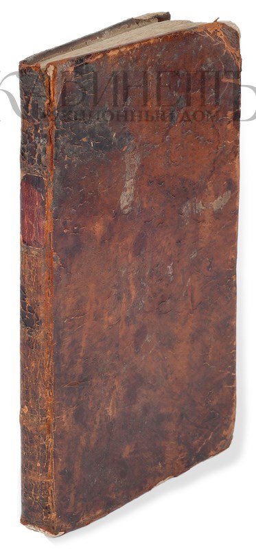Экземпляр в старинном цельнокожаном переплете. Потертости переплета, временные пятна, бледные разводы по внутреннему полю блока, загрязнения отдельных страниц, верхняя крышка и фронтиспис слегка отходят от блока, бумажный ярлык «Продается в книжных лавках Свешникова, в Москве» на форзаце, букинистический штамп на нахзаце.