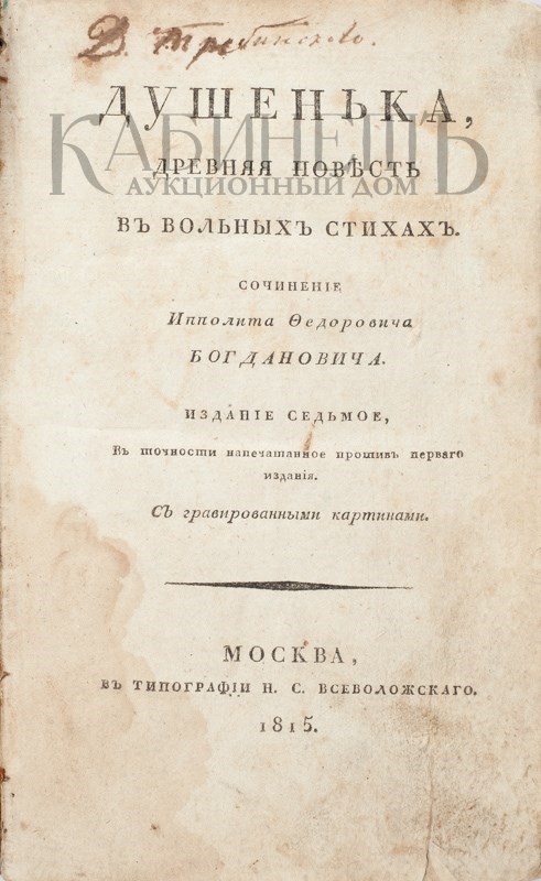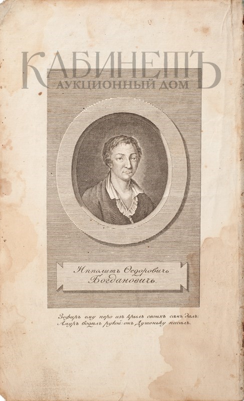 Изящное иллюстрированное резцовыми гравюрами издание первой четверти XIX века. Портрет И. Ф. Богдановича и три гравированные картинки на отдельных листах.
