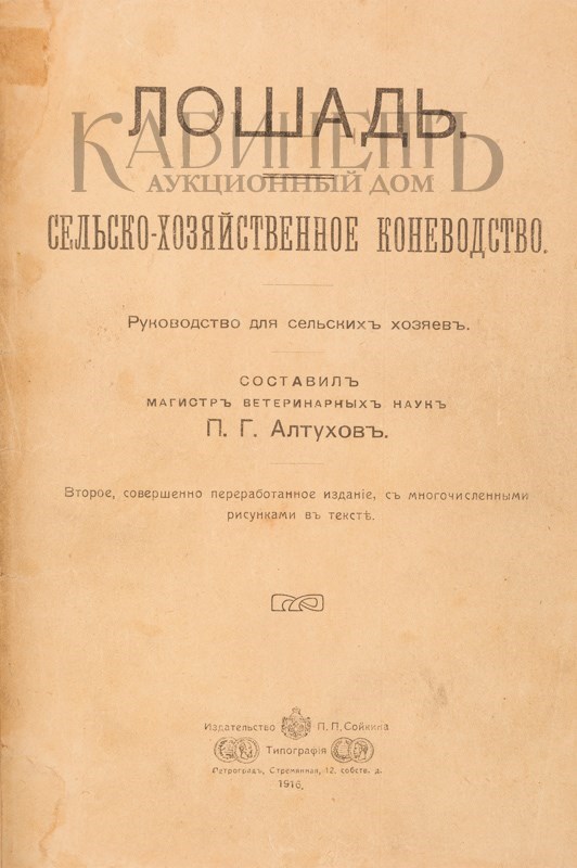Алтухов П. Лошадь. Сельско-хозяйственное коневодство. Пг., издательство П. Сойкина, 1916.
