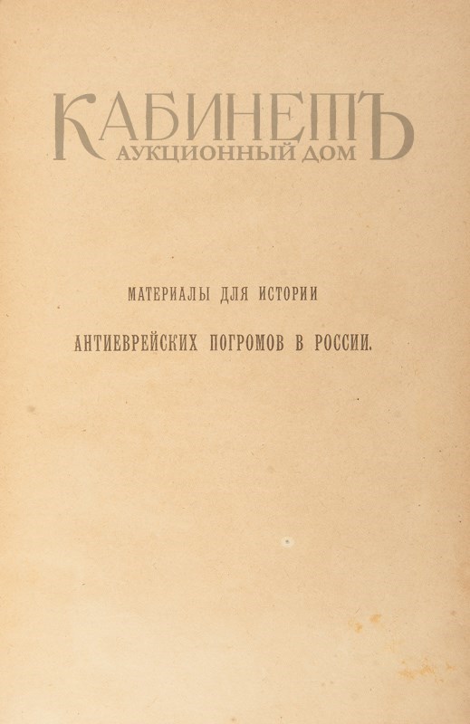 Включает вступительные статьи: Дубнов С.М. «Погромные эпохи», Красный-Адмони Г.Я. «Старый режим и погромы».