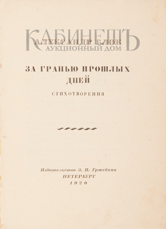 Блок А. За гранью прошлых дней. Стихотворения. Пг., издательство З.И. Гржебина, 1920.