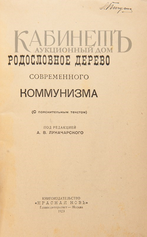 Издание содержит плакат работы художника Лео А. «Родословное дерево современного коммунизма» под редакцией А.В. Луначарского
