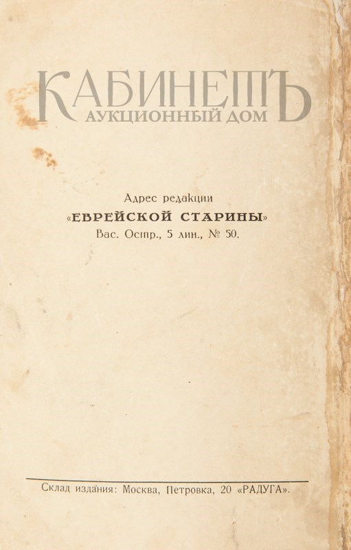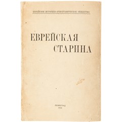 Еврейская Старина – трехмесячник Еврейского историко-этнографического общества, выходивший в Петербурге с 1909 г. под редакцией С.М. Дубнова и поставивший себе задачей сосредоточить научные исследования и материалы по истории и этнографии польско-русского еврейства.В сборнике опубликованы статьи Л. Штенберга «Проблема еврейской национальной психологии», Н. Бухбиндера «Из истории сектантского движения среди русских евреев», Б. Вишневского «К антропологии евреев России» и др.