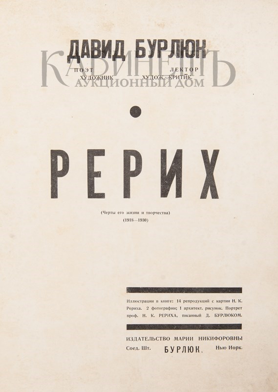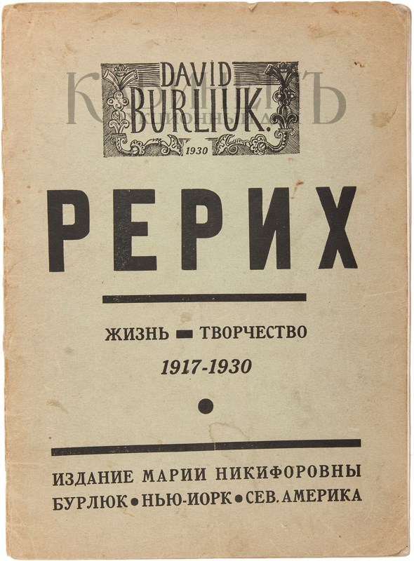 Бурлюк Д. Рерих. (Черты его жизни и творчества). (1918–1930). Нью-Йорк, издательство Марии Никифоровны Бурлюк, [1930].