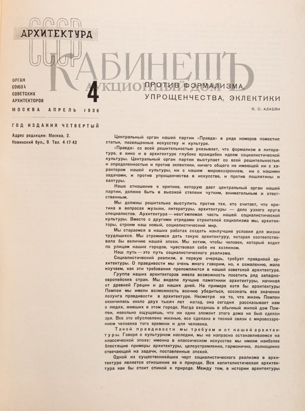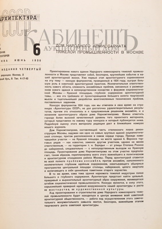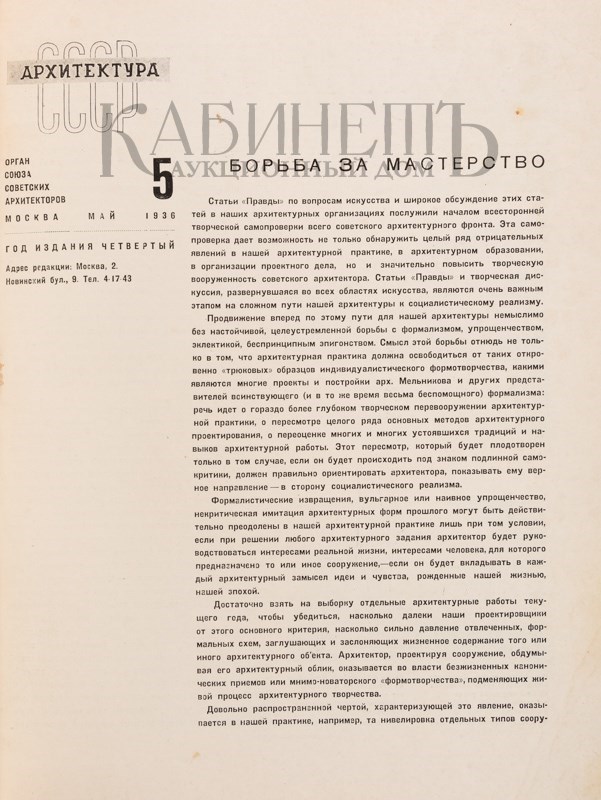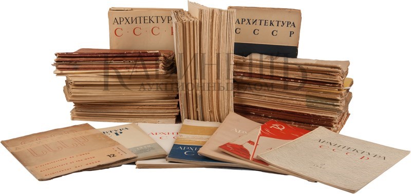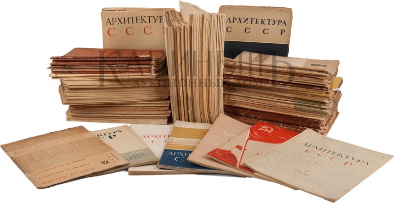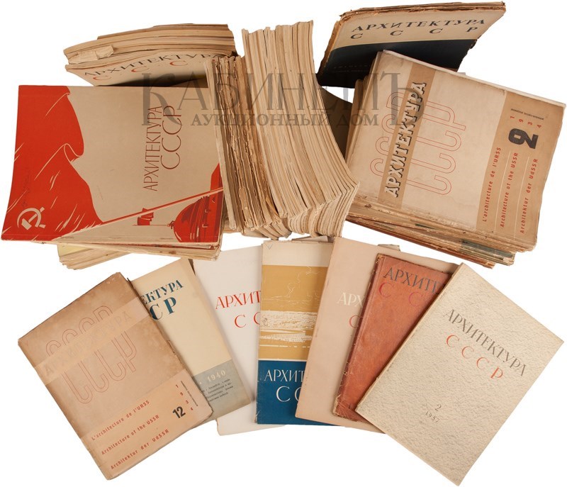 Архитектура СССР. Иллюстрированный ежемесячный журнал. Подборка годовых комплектов с 1933 по 1958. (нет номеров: №6 за1941; №1 за 1951; №№1,11,12 за 1952). М., Печатный орган Союза архитекторов СССР, Государственное издательство литературы по строительству и архитектуре, 1933–1958.