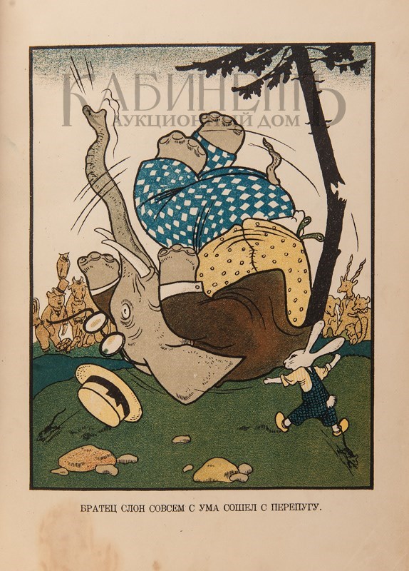 Экземпляр в издательском художественном коленкоровом переплете. Иллюстрированные форзацы. Титульный лист и отдельные страницы подклеены к блоку, пятна и загрязнения на некоторых страницах.