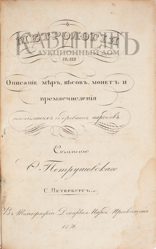 Петрушевский Ф. Метрология или Описание мер, весов, монет и времясчисления нынешних и древних народов. СПб., в типографии Департамента народного просвещения, 1831.