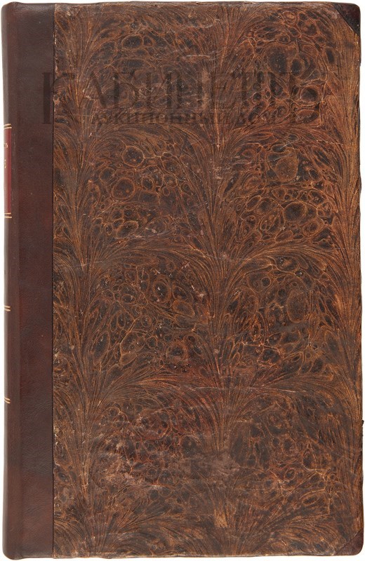 Экземпляр в старинном переплете, корешок современный с золотым тиснением, современный футляр, портрет и факсимиле отсутствуют.