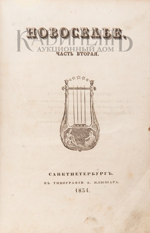 Новоселье. Книга вторая. СПб., в типографии А. Плюшара, 1834.