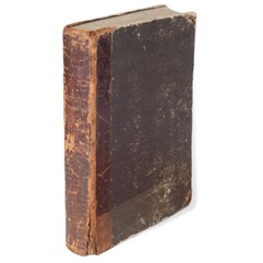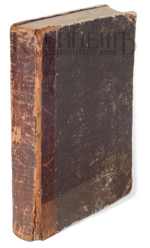 Экземпляр в старинном составном переплете. Потертости переплета, разлом в нижней части корешка, владельческие пометы на форзацах, нахзацах, авантитуле и отдельных страницах, «лисьи» пятна, загрязнения от перелистывания, редкие надрывы.