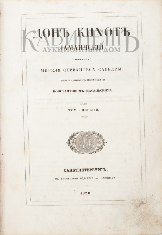 Смотри: Обольянинов. №2452. В каталоге Обольянинова также описаны портрет Дон-Кихота и гравированный заглавный лист.