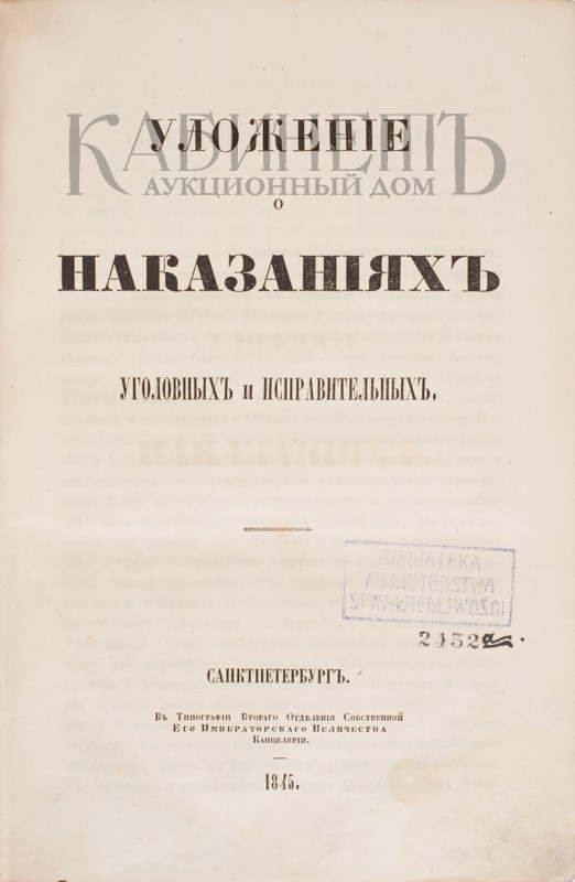 Уложение о наказаниях уголовных и исправительных. СПб., В Типографии Второго Отделения Собственной Его Императорского Величества Канцелярии, 1845.