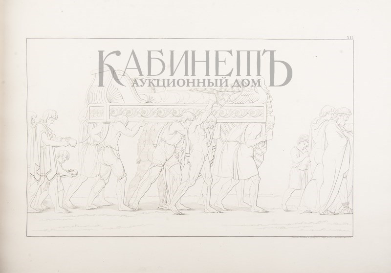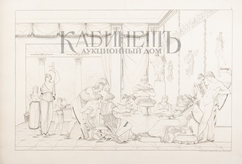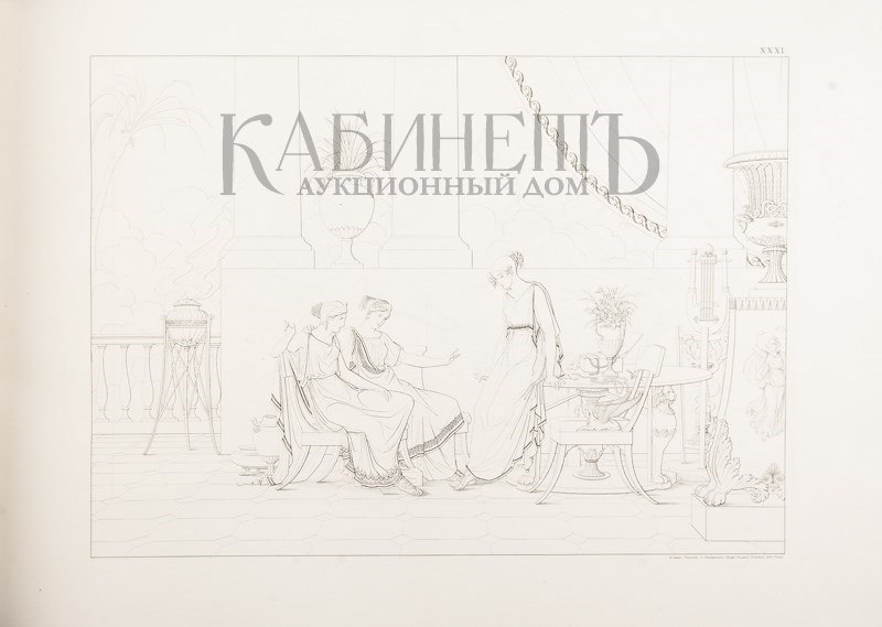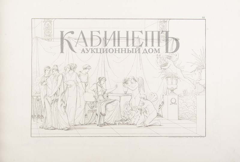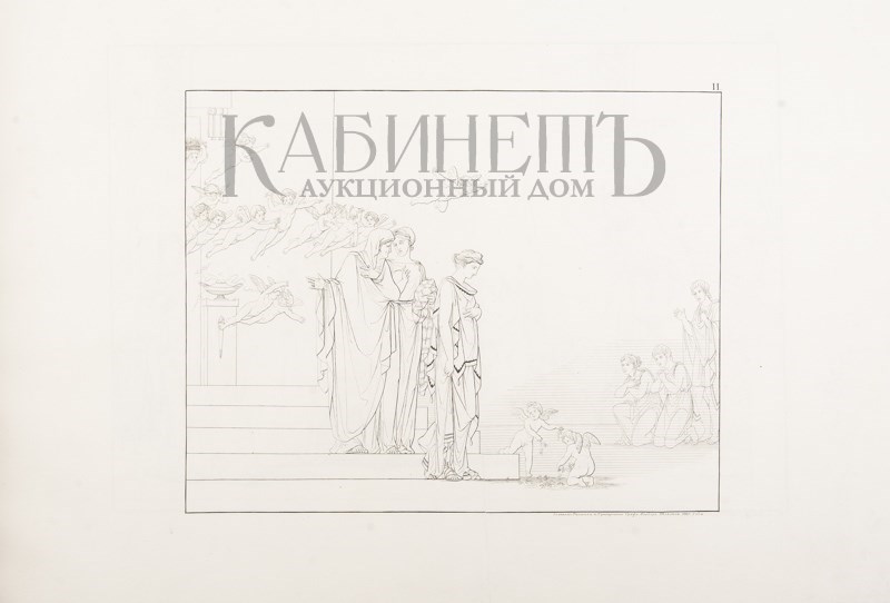 Фрагменты поэмы «Душенька» на русском и французском языках, служащие пояснением к рисункам. 62 листа очерковых гравюр. Гравированный заглавный лист.