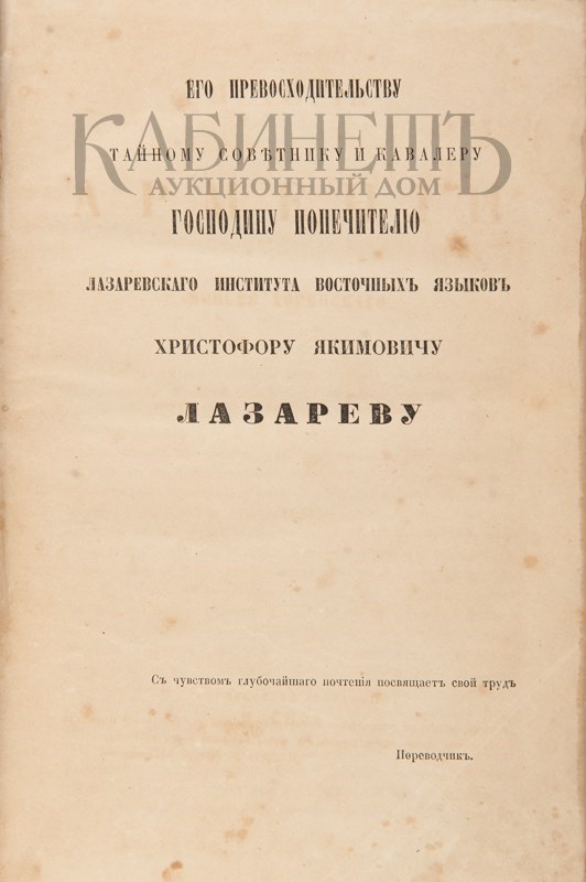 Экземпляр в современном полукожаном переплете с золотым тиснением по корешку.