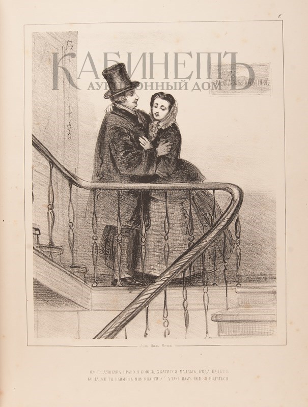 Экземпляр в старинном полукожаном переплете с золотым тиснением по корешку. Незначительные потертости. На переднем форзаце расположен экслибрис на иностранном языке, сохранено ляссе.