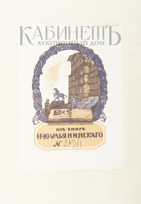 Экземпляр в современном владельческом переплете, обтянутом пестрой тканью. Владельческий экслибрис – наклейка: «Из книг Н.Ю. Ульянинского № 263/1».