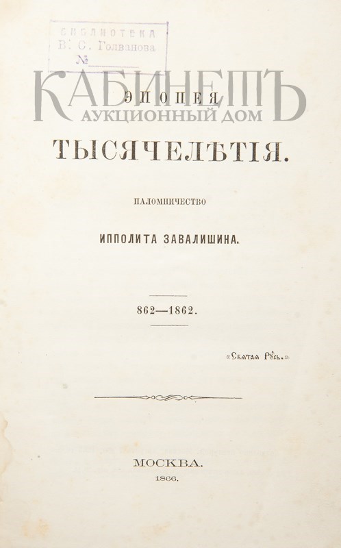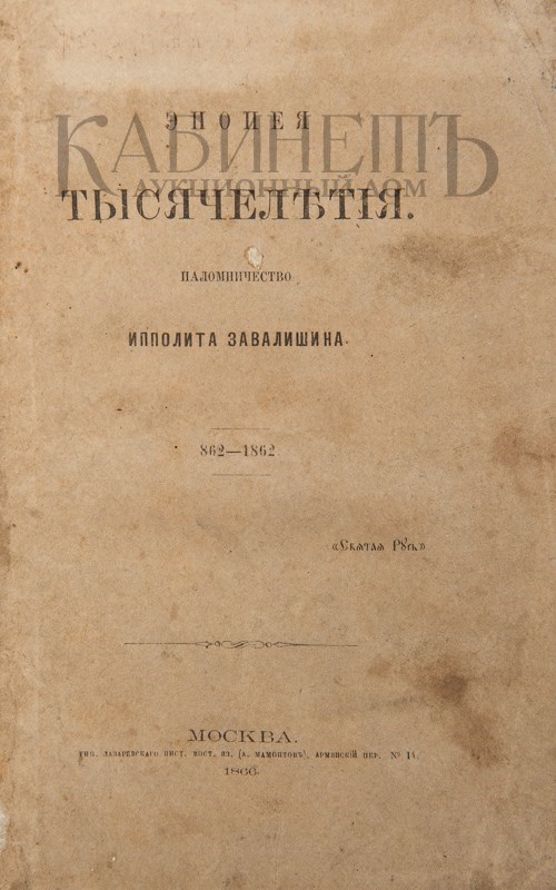 Эпопея тысячелетия. Паломничество Ипполлита Завалишина. 862 – 1862. М., Типография Лазаревского института (А. Мамонтов), 1866.