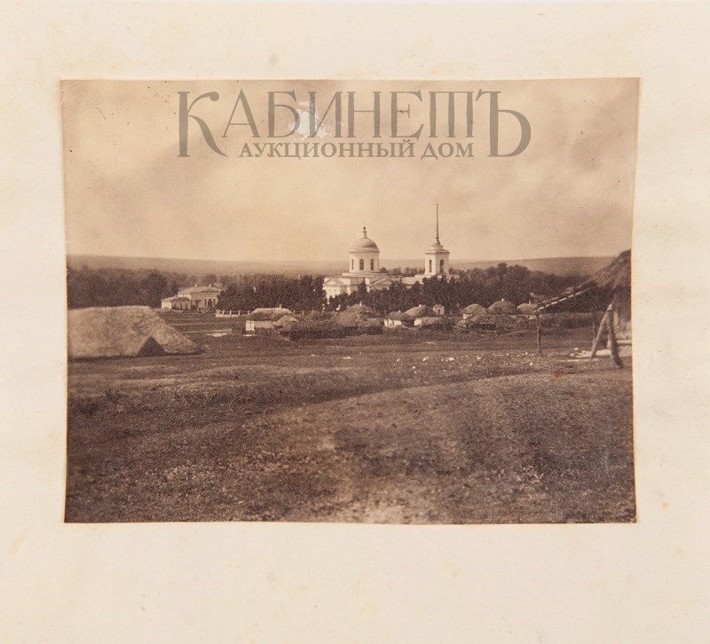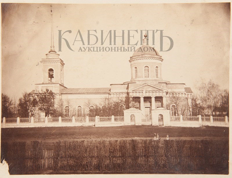 4) Вид с северо-востока на храм в стиле классицизма и село. [1870].