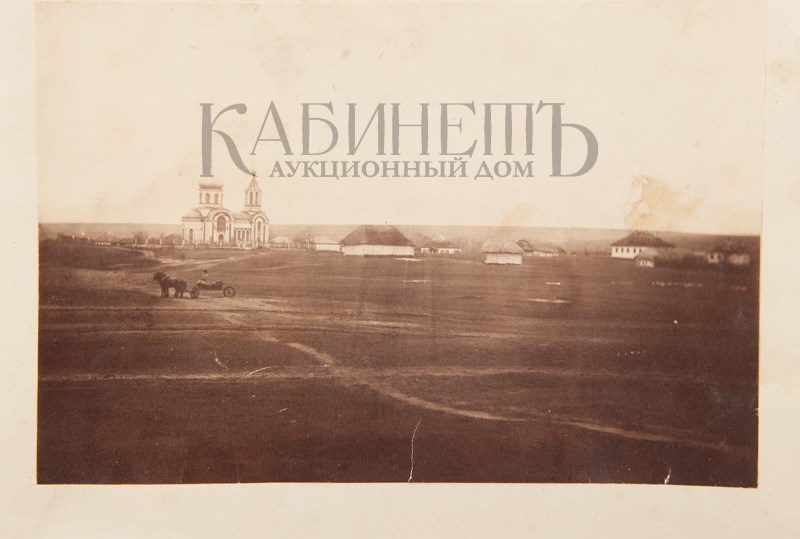 3) Вид с северо-востока на храм в неорусском стиле и село. [1870].