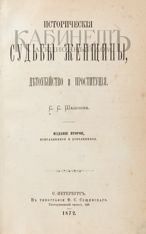 Шашков Серафим Серафимович (1841–1882) – публицист, этнограф. Автор ряда книг по истории гендерных отношений. Одним из первых связал историю женской эмансипации с эволюцией государства, семьи, этногенезом.