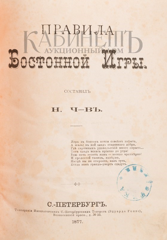 Бостон — очень распространенная в конце XVIII и первой половине XIX века карточная игра с полною колодою. Названа по городу Бостону, откуда Франклин вывез ее в Европу. Играют с прикупкой и вистом, вчетвером, из которых каждому сдается 13 карт.