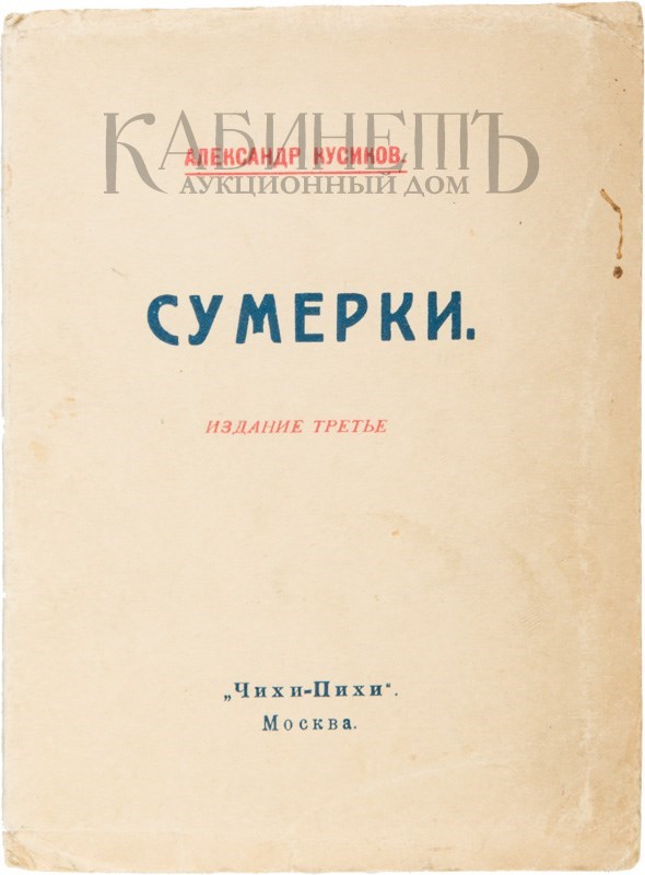 Кусиков А. Сумерки. Издание третье. М., Чихи-Пихи, [1919].