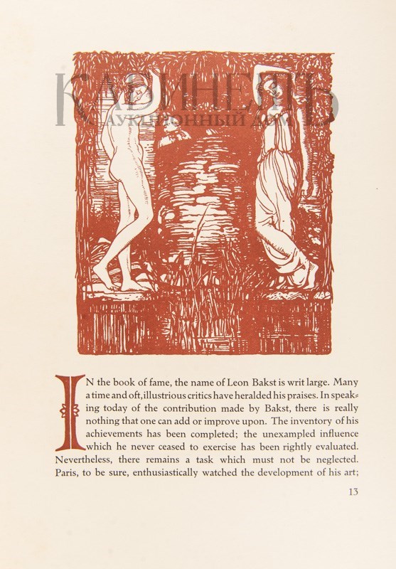 Многочисленные литографии и иллюстрации в тексте с оригинальных рисунков Леона Бакста, 68 иллюстраций на отдельных листах (включенных в пагинацию), 52 из которых в цвете, включая портрет Бакста работы Модильяни.