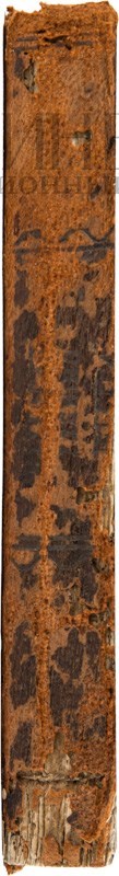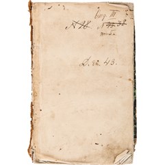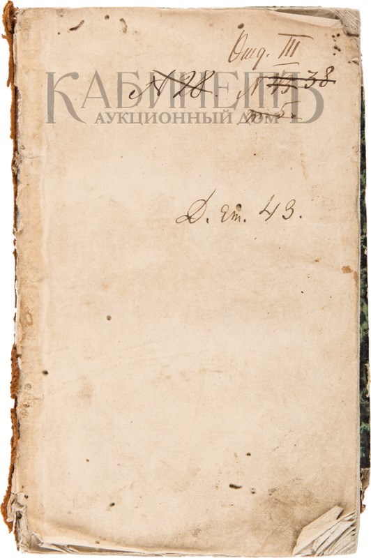 Экземпляр в старинном полукожаном переплете, верхняя крышка утрачена, владельческие пометки на форзаце, следы жучка.