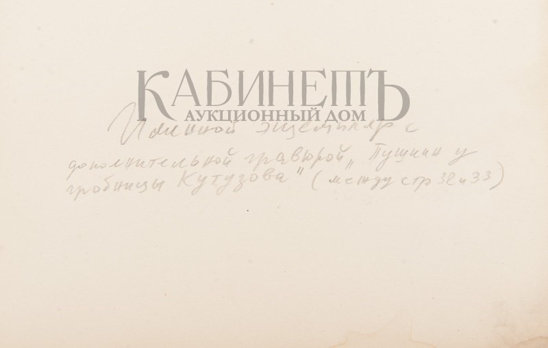 Именной экземпляр В.А. Миханковой, с дополнительной иллюстрацией «Пушкин у гробницы Кутузова» (между с. 32 и 33).
