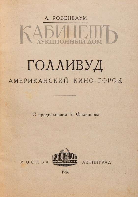 Розенбаум А.[Айн Рэнд]. Голливуд. Американский кино-город. С предисловием Б. Филиппова. М. – Л., издательство Кинопечать, 1926.