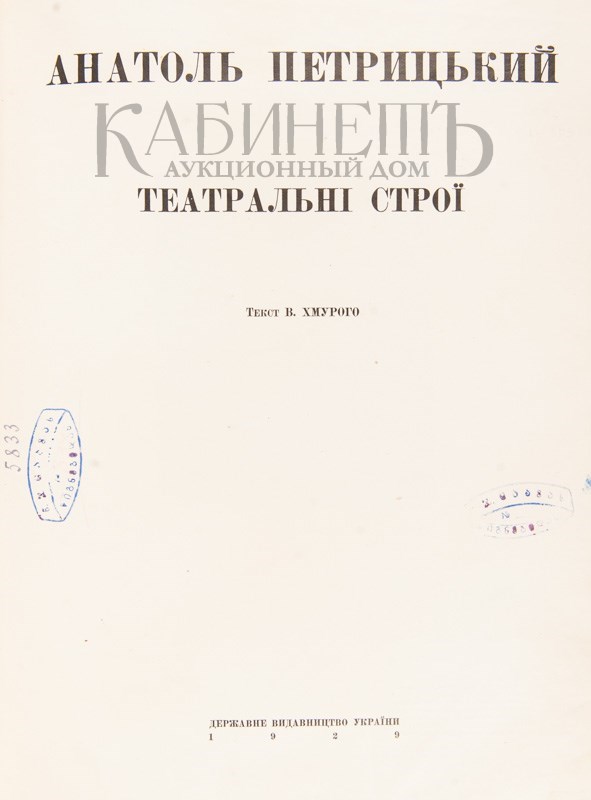 Хмурый В. Анатоль Петрицкий. Театральні строї. [Киев], Державне видавництво України, 1929. [Хмурый В. Анатоль Петрицкий. Театральные строи. [Киев], Государственное издательство Украины, 1929].